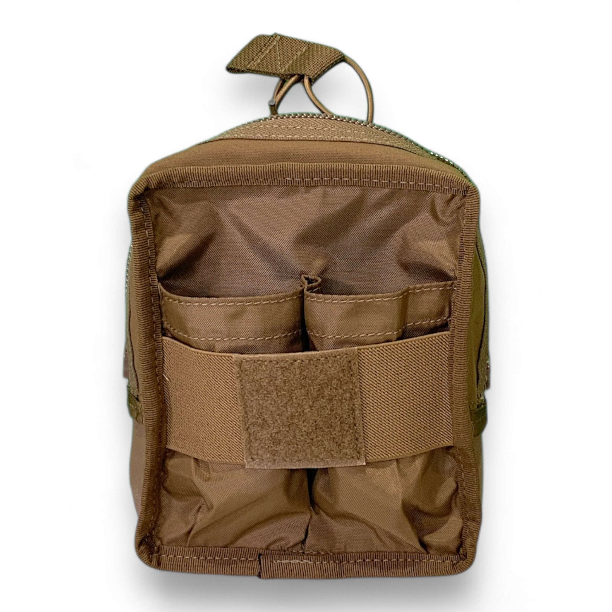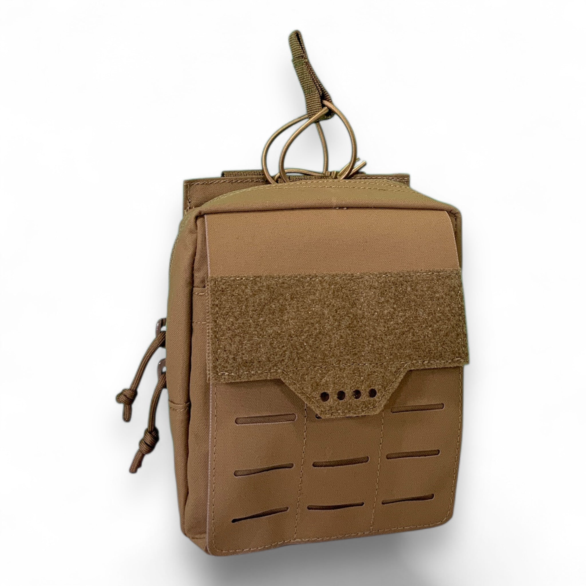 The Squad Leader Admin Pouch from BDS Tactical Gear merges the storage capacity of a zippered general purpose pouch with the organizing capability of an admin pouch. The interior panel on the body-side includes 6 pen slots and a 6" x 6" pocket with a tab for dummy cording, while the front interior panel offers two pockets well-suited for storing GPS and compasses. Both interior sides have a 2 inch elastic band for securing loose items, and the loop squares can be used for additional padding to safeguard delicate items like NVG or other sensitive gear. The back of the pouch can be separated to accommodate essential mission items, as shown in the image. Measuring 7" h x 6" w x 3" d, the pouch also features laser cut PALS laminate on the front for attaching additional gear, and a 6" x 6" x 1" pocket that secures with a Lid with Loop for attaching ID patches and name tapes. The sides and bottom are also layered with laser cut PALS to Molle other pouches onto if needed. There is a drainage hole on the bottom. The pouch opens and closes with dual #10 YKK sliders with a concealed zipper chain. Low IR signature 500D Cordura fabrics and laminate used to build this pouch. This pouch has been used by military and law enforcement for years and has been updated in 2025 to new features and fabric.
