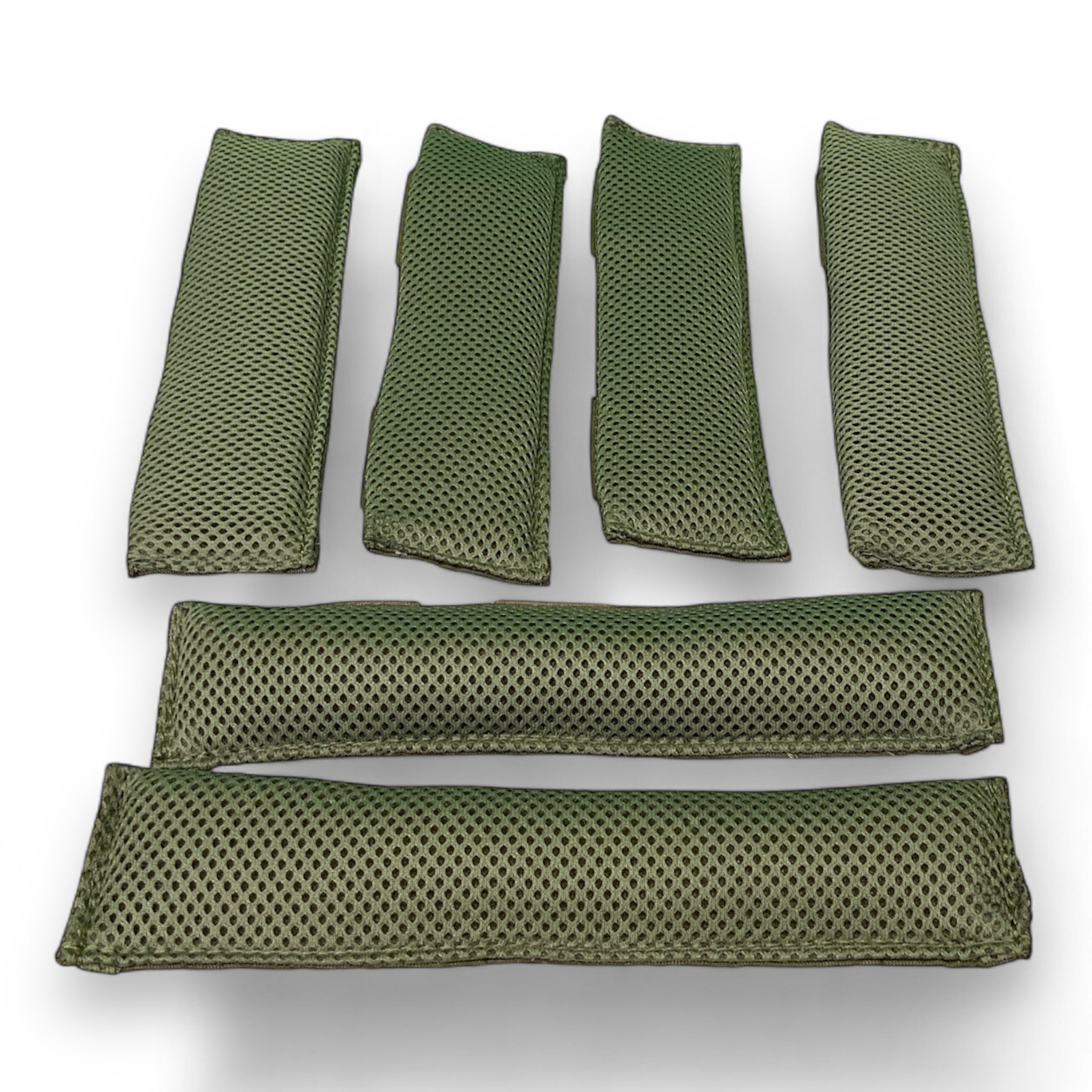 Enhance your Patrol Tactical Vest with these Air Channel Pads, featuring ¼-inch closed-cell foam for added comfort and impact absorption. Wrapped in moisture-wicking fabric, they help manage sweat during extended use. Designed to securely attach to the Velcro loops on your vest, this set includes two front, two rear, and two shoulder pads, providing comprehensive cushioning and support for demanding every day use.