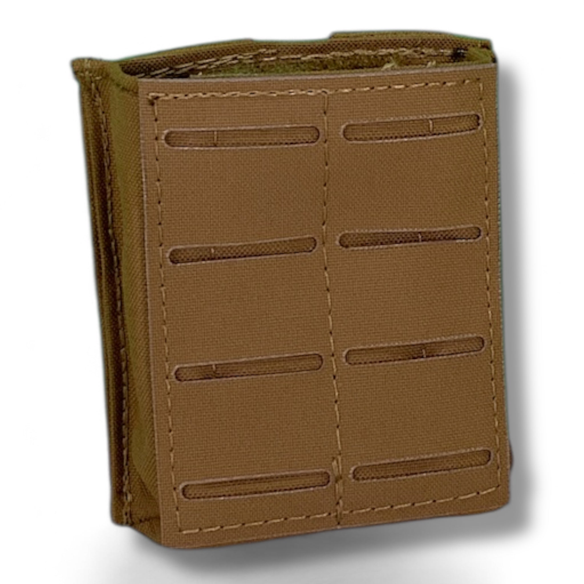 BDS Tactical Simple Stacker 1 is a single pouch made to fit one GI issue, 30 round AR15 variant magazine. The Simple Stacker 1 magazine pouch has 2 by 2 rows of pals Laser Cut PALS on the front for attaching to other modular gear. This pouch come with our stackerlok system that mounts to any PALS / MOLLE platform. There is a Kydex insert within the pouch to keep the magazines secure inside. The pouch can still be used if the kydex insert fails or brakes under any unforeseen issues. The low cut design on the Simple Stacker 1 enables faster reloading.The Simple Stacker 1 magazine pouch is manufactured in Oceanside, California. LOW IR fabrics.