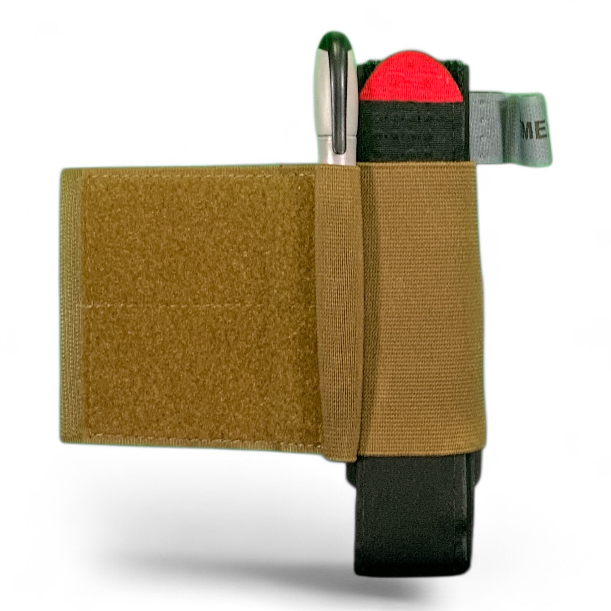 The R&S Tactical Tourniquet Winglet pouch offers a streamlined and efficient solution for carrying your tourniquet, ensuring it is both secure and readily accessible in critical moments. Designed for versatile mounting, it fits seamlessly between your chest rig or placard and your FLAK vest, or alongside your cummerbund where it connects to your flak. Its ambidextrous design allows for use on either the right or left side, adapting to your preferred setup. Additionally, it can be attached to a belt system, such as the two-piece shooters belt, providing flexible carry options. Constructed with low infrared signature fabrics, this pouch minimizes visibility in tactical environments, enhancing operational security while keeping your tourniquet close at hand. Coyote brown only pouch only TQ and pen not included.