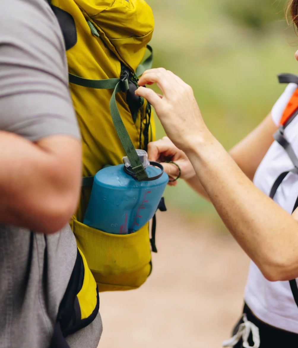 A trail companion like no other, the flexible Stow™ 1L has an internal baffle that makes it easier to hold and pocket. An easy-open flip cap cover protects the spill-proof nozzle when not in use and the bail handle makes for more comfortable carrying and attachment. Convenience meets performance.